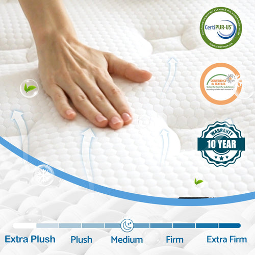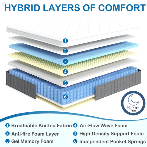 - Hybrid Mattress: Bednew mattress with soft knit fabric and pocket spring, provide balanced support to different parts of your body, relieving stress while being able to enjoy a wonderful sleeping experience. Pocket springs operate independently to minimize disturbances and allow for undisturbed sleep when your partner or pets move around during the night.